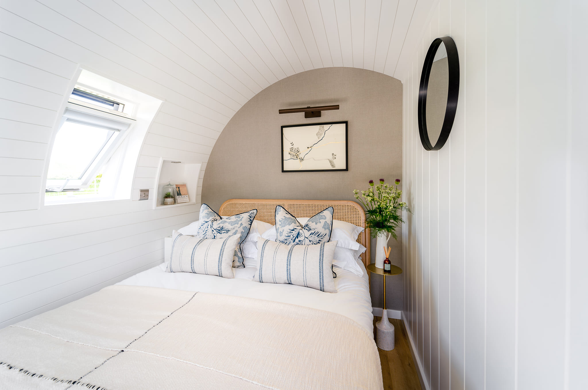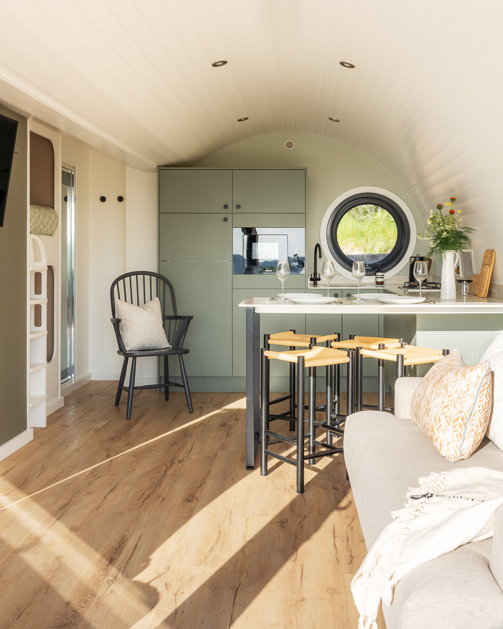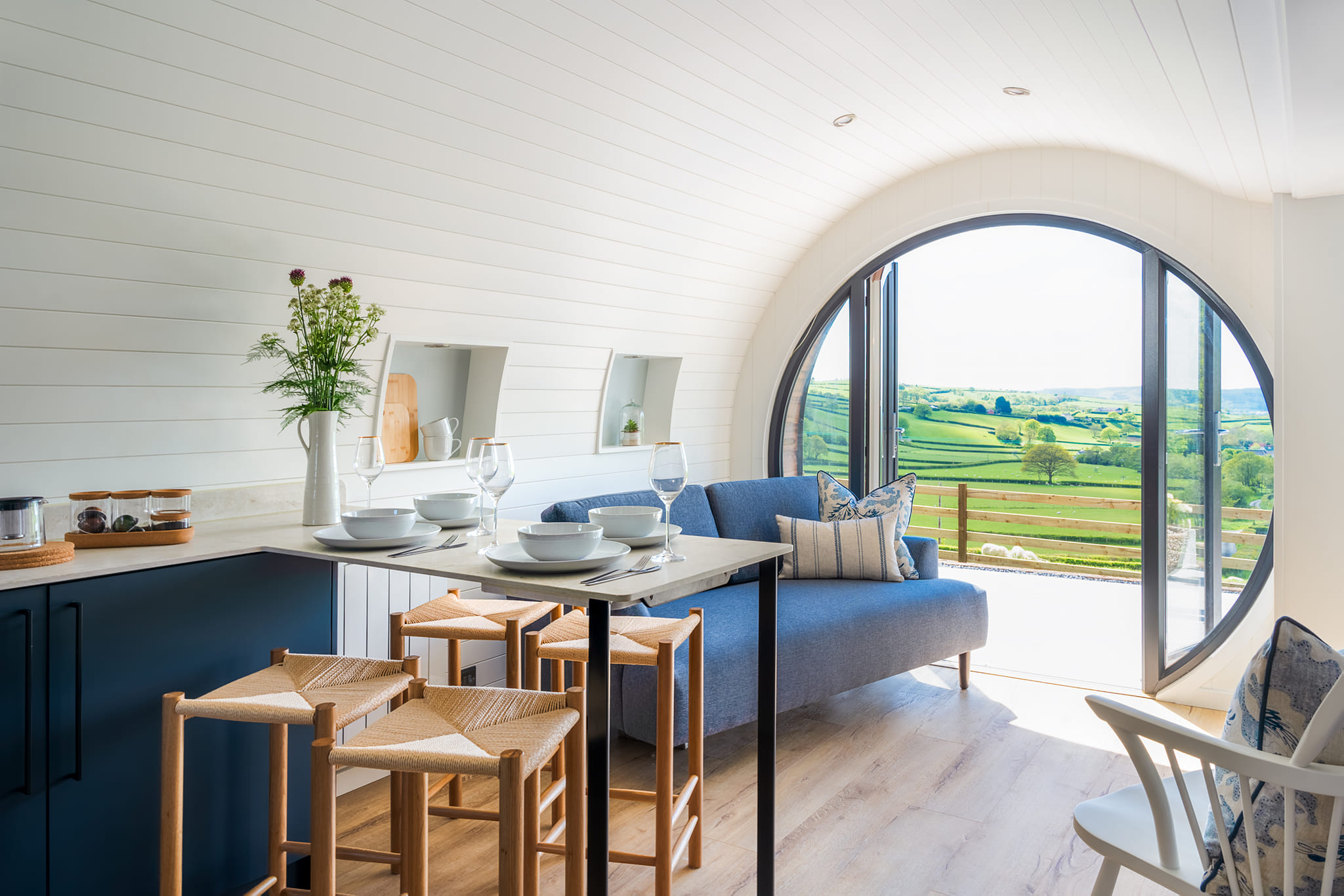 Tom and Bethan at Pendre Farm were looking at finding an alternative use to generate income and safeguard the farms future. They looked into diversification of the farm, and decided to venture into the tourist glamping industry. Sitting in the open countryside overlooking their farm and the village of Llanfihangel Y Creuddyn, the pods provide a luxurious, comfortable space taking in the views down the valley. They’re also just a walking distance away from ‘The Farmers’ pub and ‘Pendre Pumpkins’.