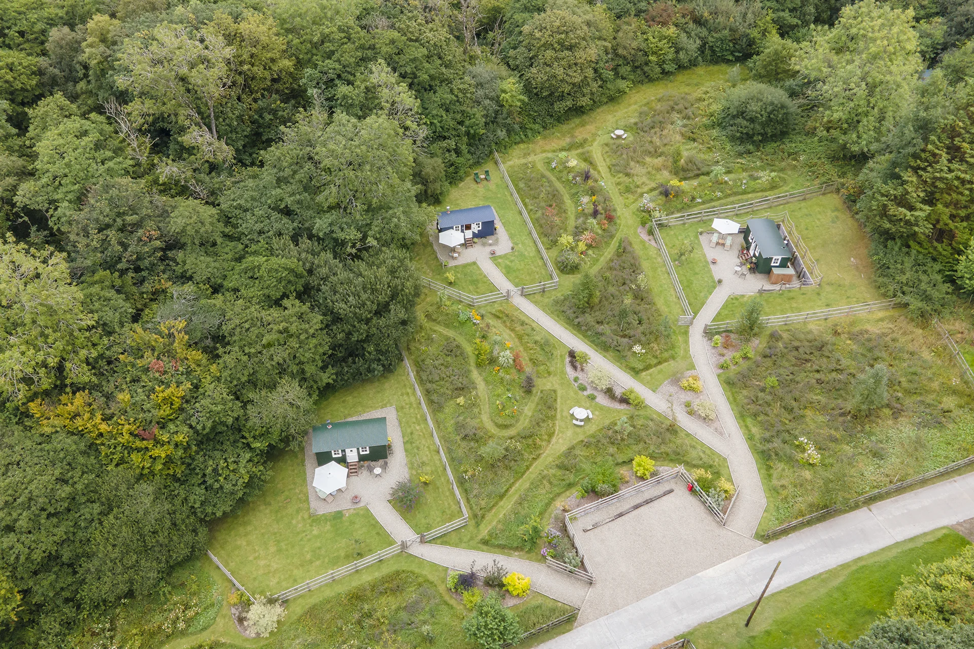 A project featuring three shepherd’s huts set in the Ceredigion countryside, thoughtfully nestled within the natural landscape. Each hut benefits from its own private, wild, and green outdoor space. Designed as a couples’ retreat, each handcrafted hut includes an open-plan living area with a bespoke kitchen, bedroom, and shower room, complete with a cozy fireplace for year-round comfort. The huts are named after local trees using their Welsh names: Onnen, Bedwen, and Collen.